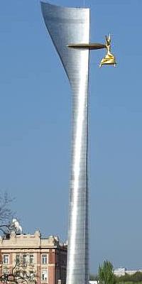 Центральная его часть - почти 70-метровая стела, выполненная из нержавеющей стали.
