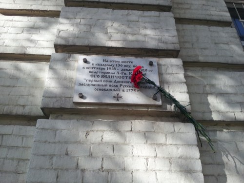 ![]() Затем на Старом Новочеркасском городском кладбище в храме Св.Димитрия Солунскаго было заказано заупокойное поминовение всех Л.Казаков зде лежащих и повсюду... После чего был проведен ежегодный обход чудом ещё сохранившихся памятников (либо их руин), имеющих отношение к чинам Л.Гв.Казачьяго Е.В. полка, их приборка и краткое молитвенное поминовение... ![]() ![]() По возвращении в Ростовъ на Дону были возложены цветы к Мемориальной Доске Л.Гв.Казачьему Е.В.полку на Старых Казармах (на б.Скобелевской улице, а ныне - ул.красной-армейской ),где Полк квартировал в Гражданскую войну. Доска установлена в 1999 году попечением Ревнителей памяти Полка из Донского Военно-Исторического клуба.