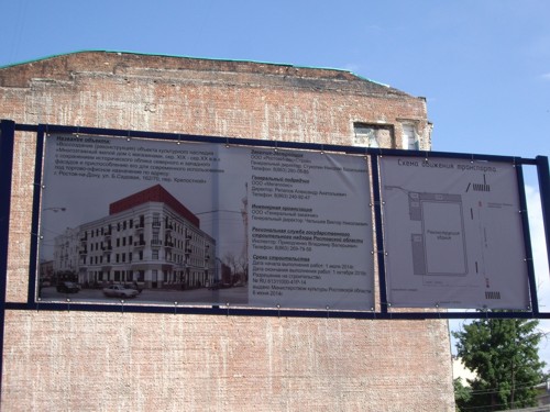 Отвечаем: Мы уже имели случай высказаться, что за невнятностью и путанностью слов всегда скрывается такая же невнятность и путаница мыслей, и, как итог, такая же невнятность и путаница дел. Кроме того такая невнятность прикрывает протаскивание незаконных решений. Напомним, что так же точно – «воссозданием-реконструкцией», - называли и печально известный проект кинотеатра «России». И мы уже имели возможность высказаться по этому поводу, что люди допускающие такие выражения или не дружат с русским языком и элементарной логикой, или намеренно «наводят тень на плетень». В данном случае – с точки зрения работ, допускаемых законодательством о культурном наследии, - это проект правильнее было бы назвать проектом капитального ремонта с присобелнием под совремнный нужды и воссозданием фасада здания. Правда, после того были снесены исторические стены памятника – никто, кстати, так и не объяснил, почему это было сделано, при том, что в конце прошлого года власти заверяли, что намерены укрепит «родные» стены и фундамент и только потом начать работы по ремонту, воссозданию памятника, - это уже просто строительство с воссозданием исторических фасадов. Что касается самого проекта, - хорошо, конечно, что исторические фасады собираются воссоздавать (хотя лучше было бы их не сносить). Как это получится в конечном результате – посмотрим. Но вот какой-то чемодан, водружённый над зданием – это просто архитектурная дикость и уродство. Кстати, в присланной надписи есть другая существенная странность. Там сказано, что разрешение на строительство выдано областным министерством культуры. При этом ничего не сказано про то, кем подготовлен проект и кем он утверждён. Странность в том, что до последнего времени разрешения на строительство выдавала горадминистрация, а минкульт утверждал проекты работ на объектах культурного наследия. А так самострой какой-то получается. Без утверждённого проекта, неизвестно кем разрешённый. |