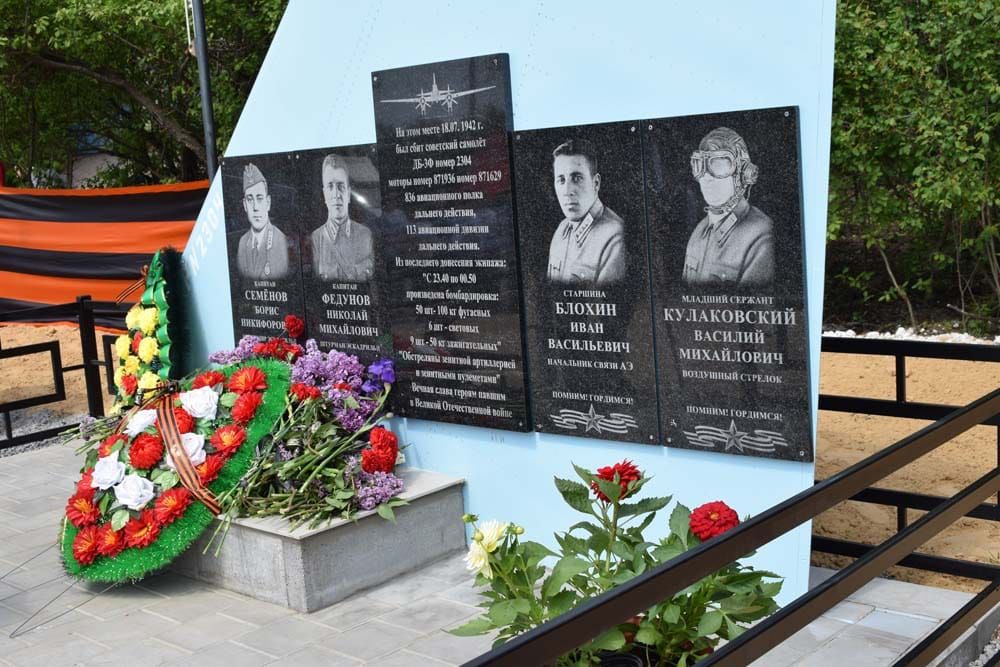 6 мая 2025 г. в хуторе Солонцовском торжественно открыли памятник советским летчикам, погибшим 18 июля 1942 года на территории Верхнедонского района. В мероприятии приняли участие заместитель губернатора Ростовской области Михаил Корнеев, представители районной и местной администраций, юнармейцы и жители муниципального образования. Осенью 2024 года поисковый отряд «Донской» им. Анатолия Калинина под руководством Вячеслава Градобоева совместно с историко-краеведческим музеем Верхнедонского района южнее хутора Дубровского обнаружил фрагменты сбитого советского самолета. Среди обломков был найден полный комплект номеров самолета и моторов. Это позволило установить, что это самолет из состава 836-го авиационного полка дальнего действия 113 авиадивизии. Он был списан 18 июля 1942 года как не вернувшийся с боевого задания. Сотрудники районного музея, работая с архивными материалами, обнаружили «Отчет о боевой работе 113 авиадивизии за июль месяц 1942 года». В нем значится, что в составе 836-го авиационного полка дальнего действия есть потеря – экипаж в составе Семёнова Бориса Никифоровича, летчика, капитана; Федунова Николая Михайловича, штурмана, капитана; Блохина Ивана Васильевича, начальника связи авиаэскадрильи, старшины, стрелка-радиста; Кулаковского Василия Михайловича, воздушного стрелка, младшего сержанта. Память погибших летчиков почтили минутой молчания и троекратным оружейным салютом. В завершение торжественной церемонии открытия участники возложили венки и цветы к новому памятнику.